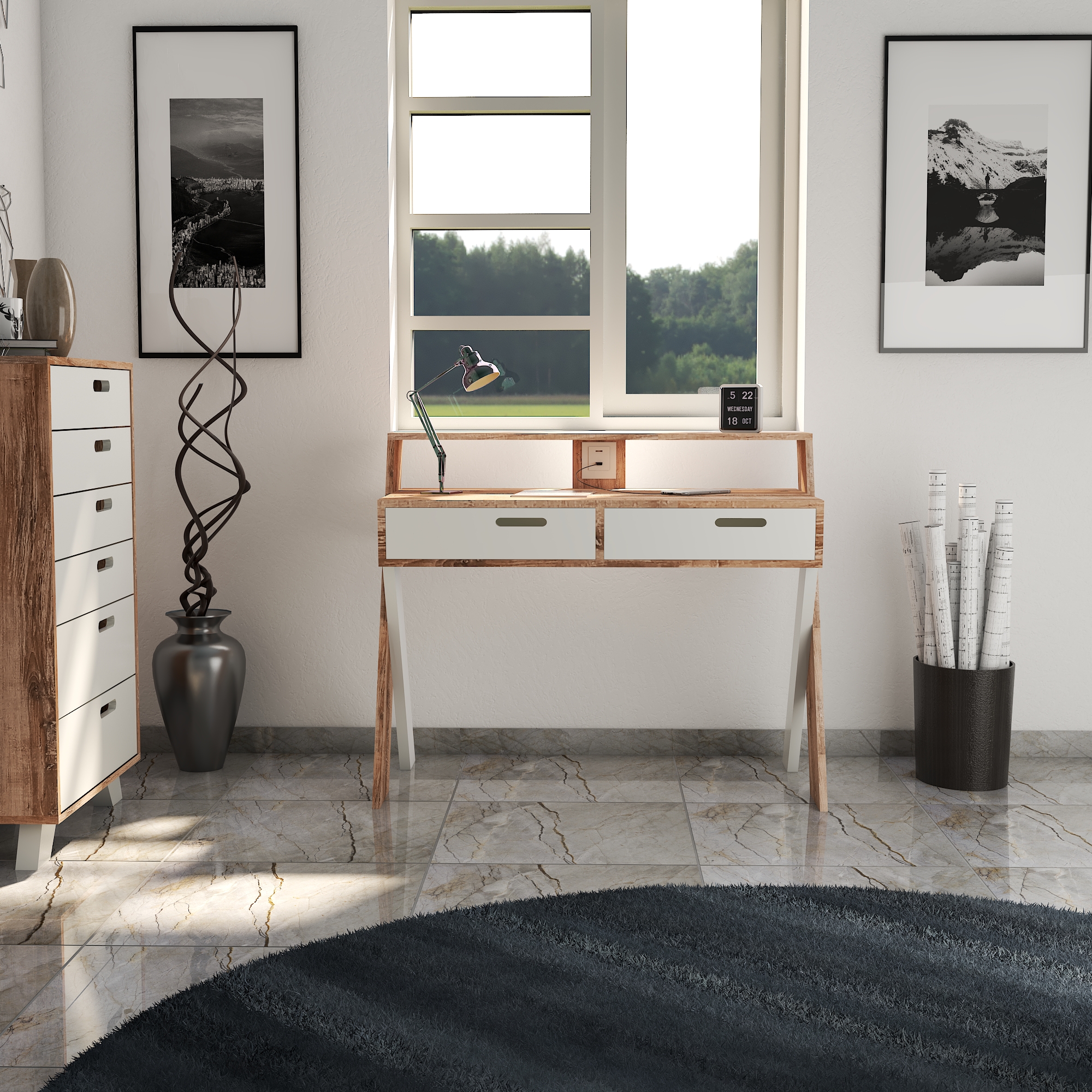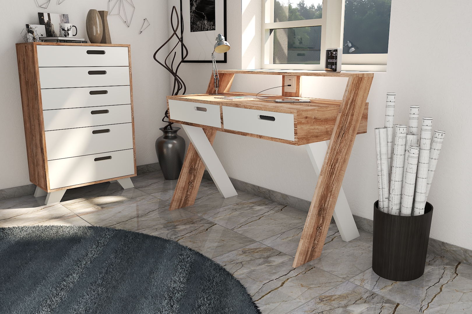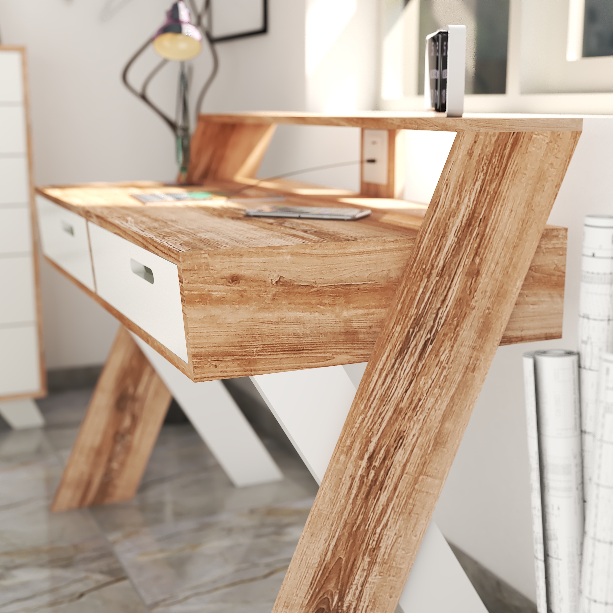 Escritorio con patas en X y alzada