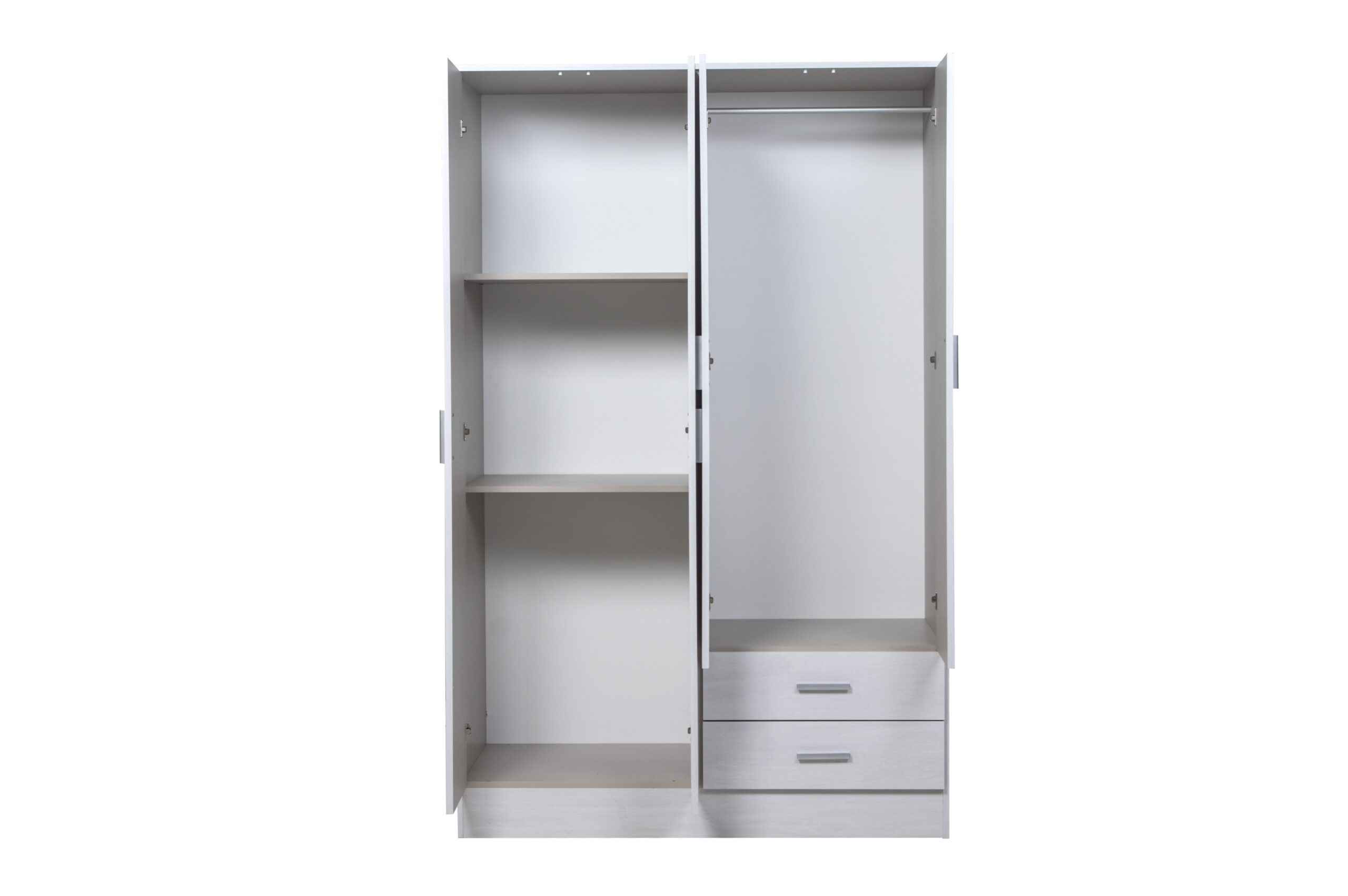 Placard con acabado de melamina touch, con lustre interior y con correderas metálicas en los cajones.